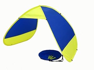 Auto pop opened in one second, easily folded down in 3 seconds. Packed in a 21" carrying shoulder bag. Light weight, easy to carry, suitable for beach, park and outdoor activities. Durable T190 nylon UV protected Nylon (50+ UPF) rating on 2 sides of tent, flame retardant nylon meet CPAI-84 standard. This self erecting tent is an excellent outdoor must have equipment to carry to all outdoor activities, specially for the family with baby and children, it can prevent youngster over exposed under the sun and give parent a nice relaxing shelter to read or take a nap. Self expanded in one second, folds down in 3 second. *2 sides panels are made from durable T190 nylon cloth, UV protective coating rating 50 + UPF, flame resistance nylon meets CPAI-84 standard. *Strong steel beam frame covered by 600D Oxford nylon, light weight and durable. *Comes with 4 plastic ground stakes, sand bags pockets on both side panels. Full size carrying case with shoulder strap *Tent dimensions: 210cm (L)x132cm (W)x128cm (H) or 82.7"(L)x52"(W)x50" (H).. Weight: 3 lb 2oz. The Beach mat is not included in the package.